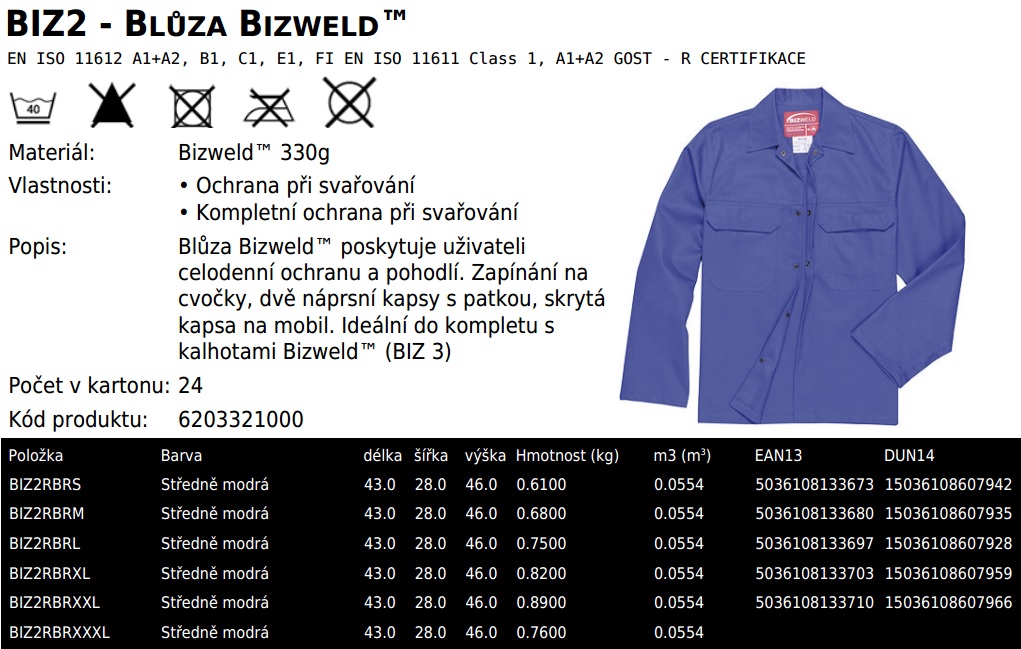 Blůza svářečská Portwest BIZ2 středně modrá vel.XL