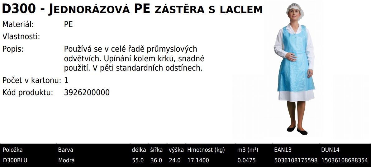 Zástěra jednorázová PE APRONPE (100 ks/bal) modrá